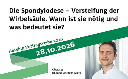 Die Vorträge sind öffentlich und kostenlos und finden am Veranstaltungstag jeweils um 19.30 Uhr im Gartensaal der Hessing Burg auf dem Hessing Gesundheits-Campus statt. Interessenten werden um Anmeldung unter www.hessing-kliniken.de/vortrag gebeten.