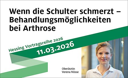 Die Vorträge sind öffentlich und kostenlos und finden am Veranstaltungstag jeweils um 19.30 Uhr im Gartensaal der Hessing Burg auf dem Hessing Gesundheits-Campus statt. Interessenten werden um Anmeldung unter www.hessing-kliniken.de/vortrag gebeten.